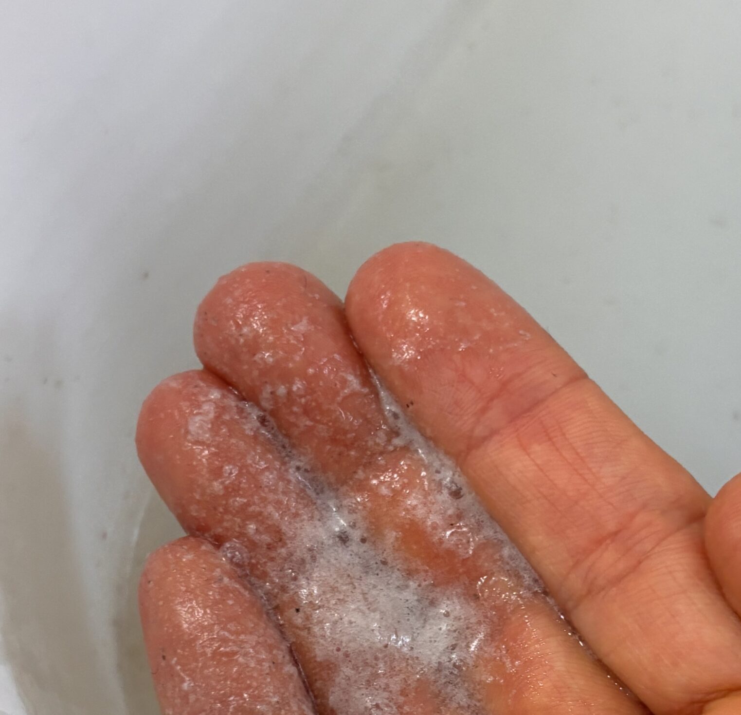 続いて、溜めたお湯の中で乳化&流し落としていく。